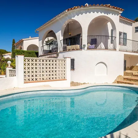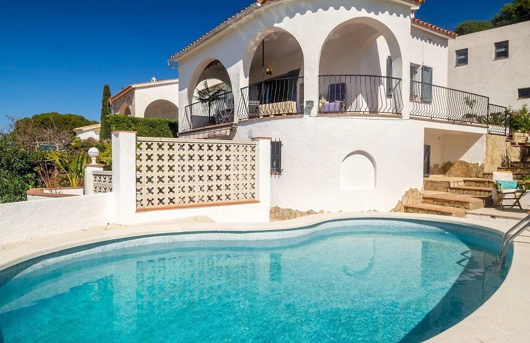 Con vistas a la piscina privada, la villa da la bienvenida a sus huéspedes.